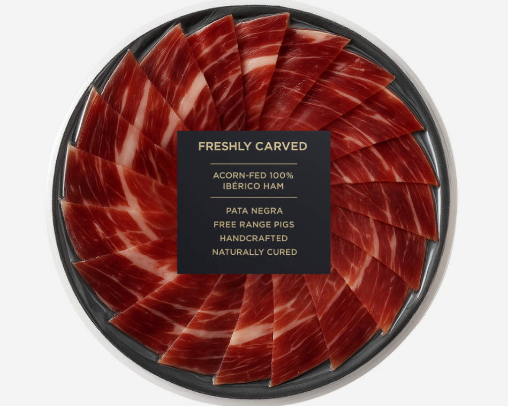 100% acorn-fed Iberian ham, expertly sliced and shipped the same day for peak freshness.